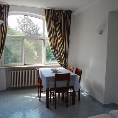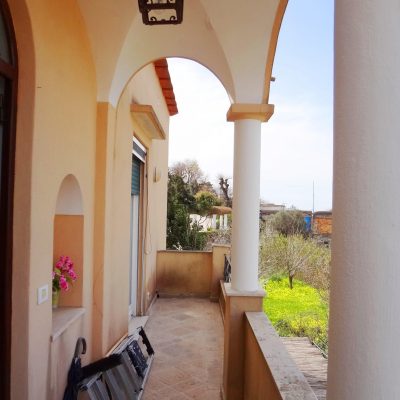 Vendesi appartamento posto al primo piano di una villetta bifamiliare su due livelli, in posizione tranquilla e soleggiata. L'appartamento è in perfette condizioni di manutenzione ed è dotato di condizionatori, impianto di riscaldamento e infissi in pvc con doppio vetro. Composto da ingresso, disimpegno, una camera da letto, ampio salone attualmente adibito a seconda camera da letto, cucina, sala da pranzo, bagno e wc di servizio. Dotato altresì di un terrazzo, due balconi e un locale di servizio/lavanderia. Al piano terra una piccola zona di terrazzo e un appezzamento di terra sono di pertinenza esclusiva dell'appartamento. Nelle immediate vicinanze si trova una scuola elementare con annesso parco giochi e diverse attività commerciali quali un negozio di alimentari, una merceria, un ristorante/pizzeria e un bar.