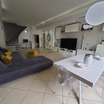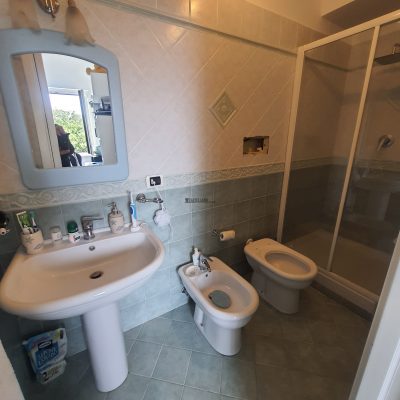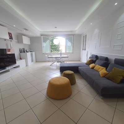 A Meta, lato mare, pressi P.zza Scarpati, vendesi appartamento con ingresso indipendente, su due livelli, composto da: al piano terra da ampio salone con cucina abitabile, bagno e terrazzo; al primo piano da: disimpegno, camera matrimoniale, camera, spogliatoio, stanza da bagno, bagno e balconata. Al piano seminterrato c'è un comodo locale di ca.22mq. Inoltre la proprietà dispone di un box auto pertinenziale da poter acquistare separatamente.
